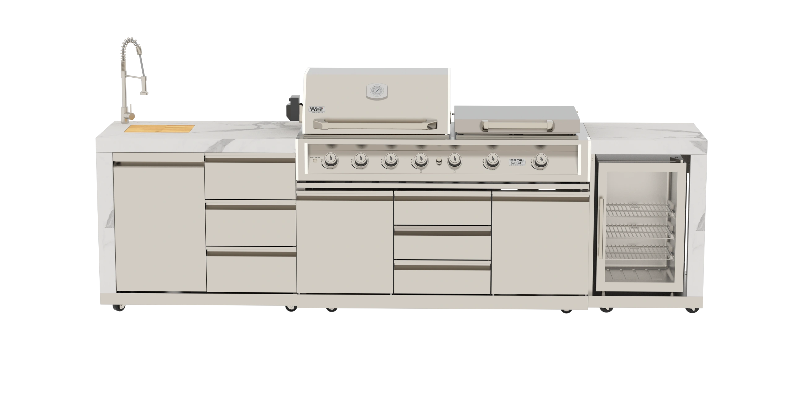Crafted for those who value luxury, durability, and performance, this straight outdoor kitchen island delivers exceptional cooking versatility and striking design—making it the ultimate statement piece for your outdoor living space.