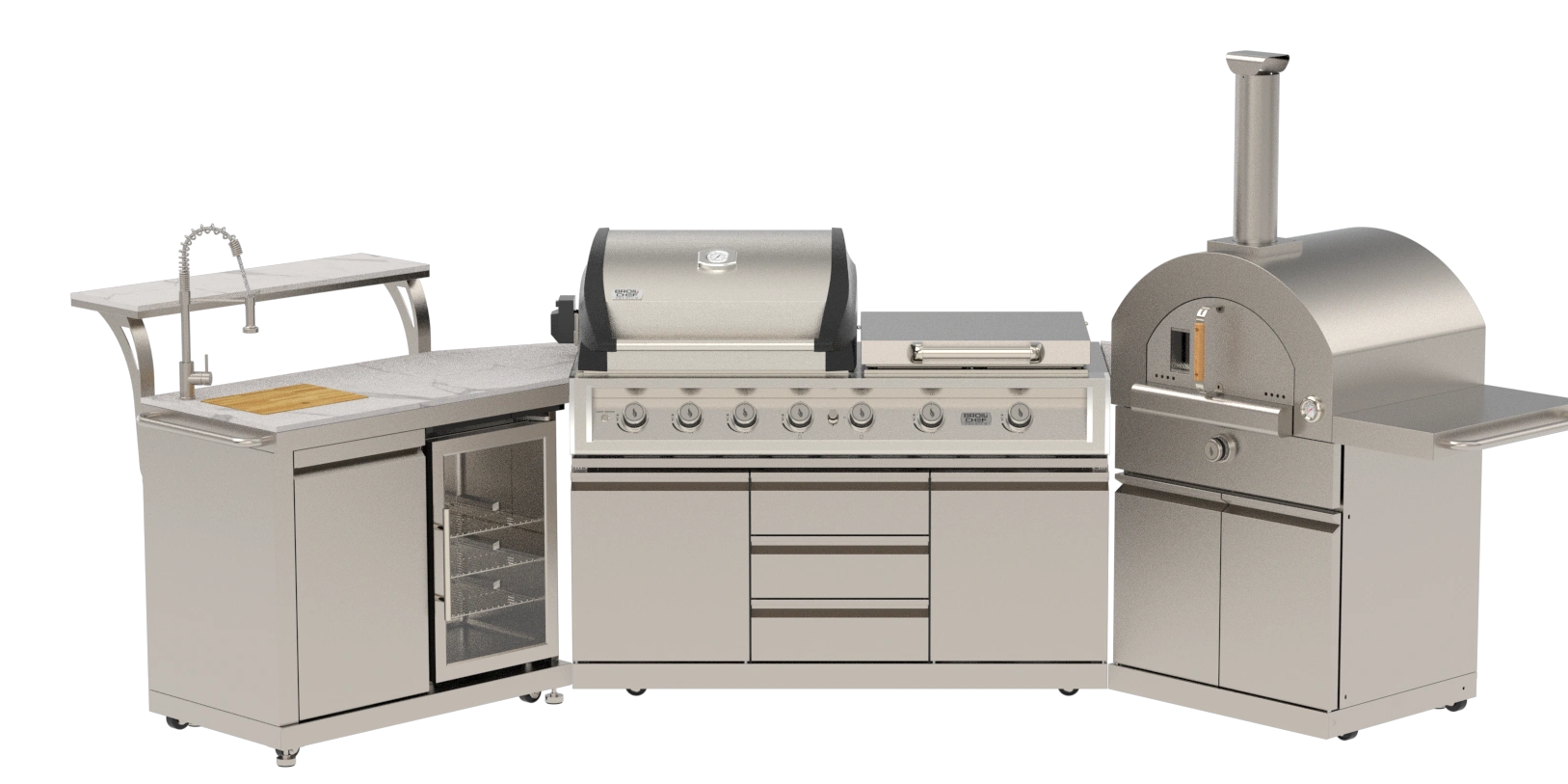 - Full Outdoor Kitchen Amenities – Built-in sink, 63L refrigerator, storage, and accessories (model dependent).