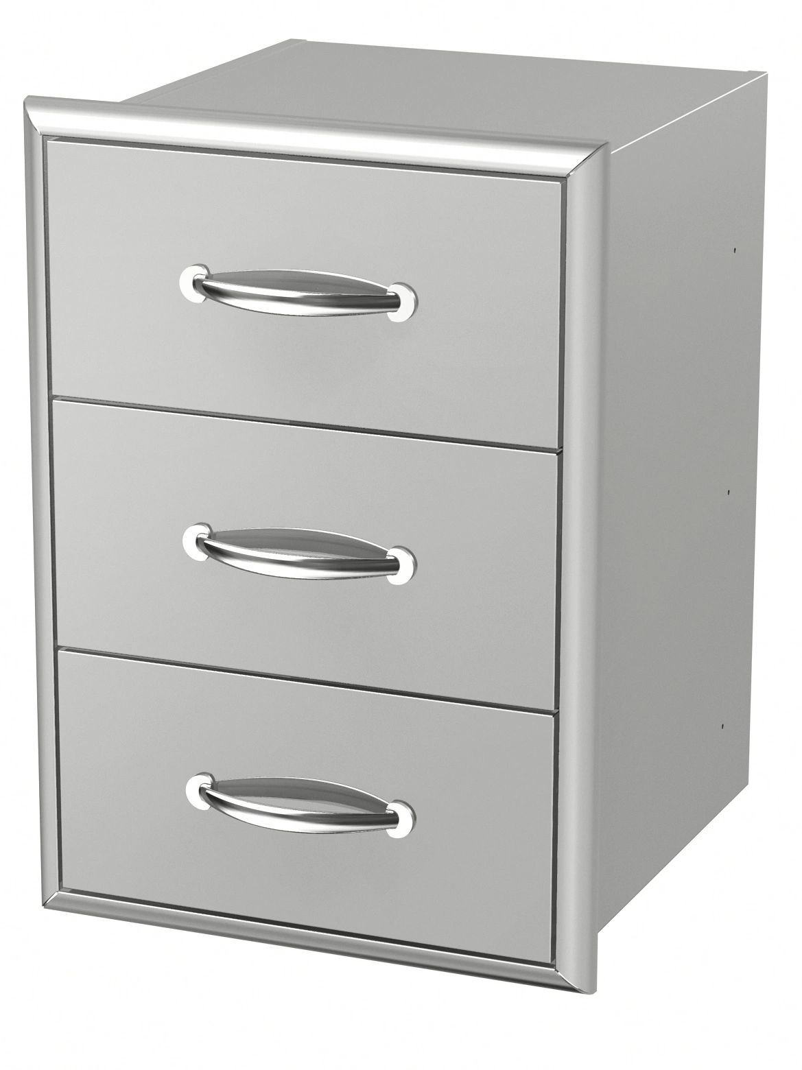 This Broilchef Triple Access Drawer feature ambient lighting, clean design elements and quality construction using commercial grade #304 stainless steel that can stand up to the outdoor elements. Accented with modern handles and a unique, completely rounded bevel design, this drawer provides that quality touch to your outdoor kitchen or BBQ island. Broilchef storage drawers are the perfect outdoor storage solution!